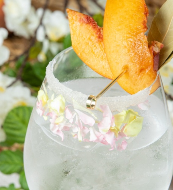 Refrescante e delicadamente frutado, este drink destaca as notas suaves de pêssego e flor de laranjeira da vodka Ketel One Peach & Orange Blossom. A combinação com água tônica mantém o drink leve, enquanto as fatias de pêssego e as ervas aromáticas acrescentam frescor e um aroma elegante, ideal para momentos descontraídos no verão.