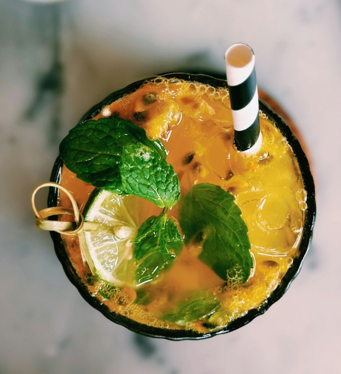 Refrescante e aromático, este drink combina a base neutra de Ketel One Vodka com notas cítricas e tropicais de limão e maracujá equilibradas pelo toque adocicado do licor de baunilha. Finalizado com água com gás, é um spritz leve e perfumado que ganha frescor extra com o limão e o manjericão.
