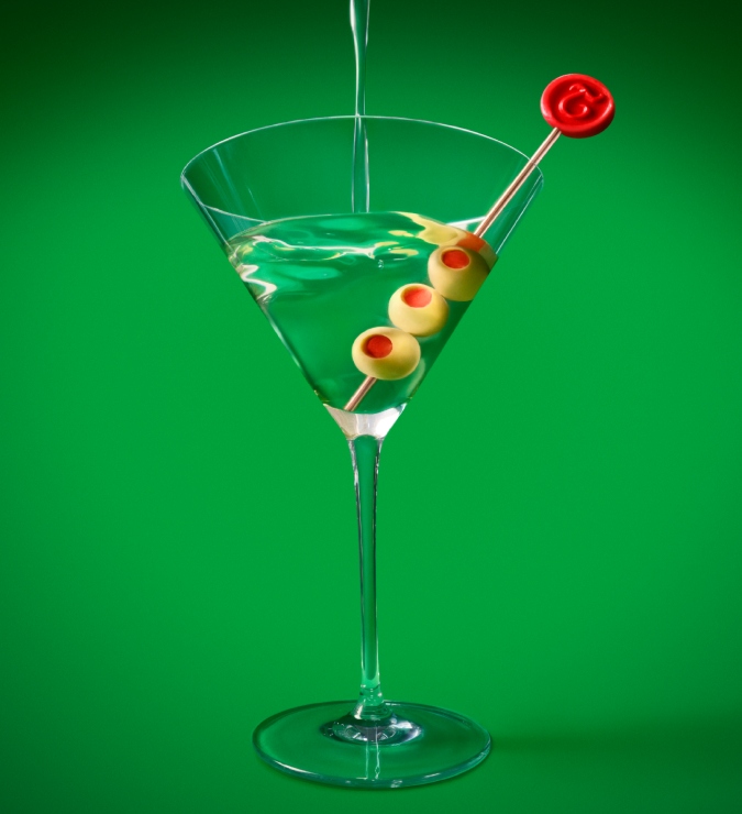 Dispense o gelo usado para resfriar a taça e sirva o drink. Finalize com a azeitona em um palitinho e aprecie. Veja a receita completa do drink aqui.