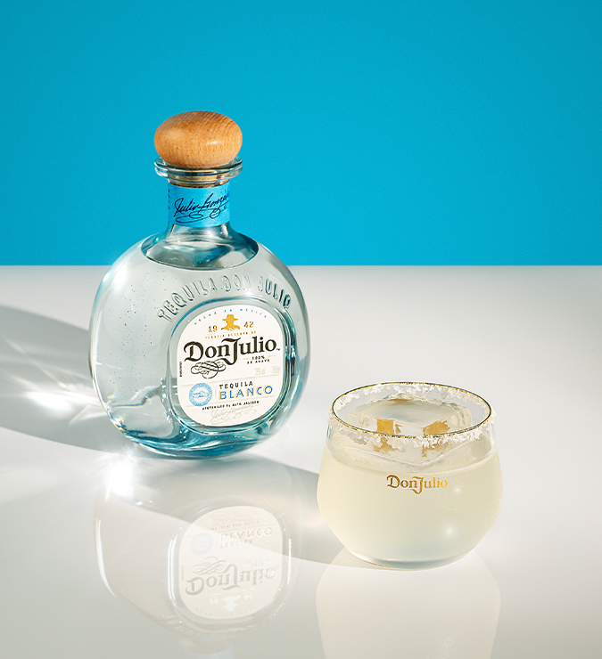 Em uma coqueteleira, coloque a Tequila Don Julio Blanco, o xarope de agave e o suco de limão;