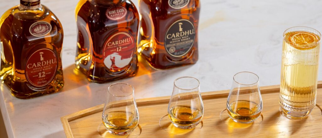Já em termos de harmonização, single malts como o Cardhu combinam bem com queijos suaves, castanhas, chocolates pouco doces e pratos delicados que não sobreponham suas nuances.