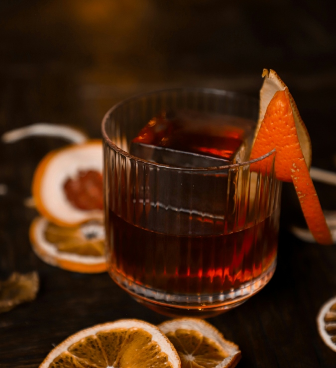 Complexo e aromático, o Negroni maturado entrega profundidade e elegância logo no primeiro gole. É um clássico que combina perfeitamente com um esquenta mais elaborado.